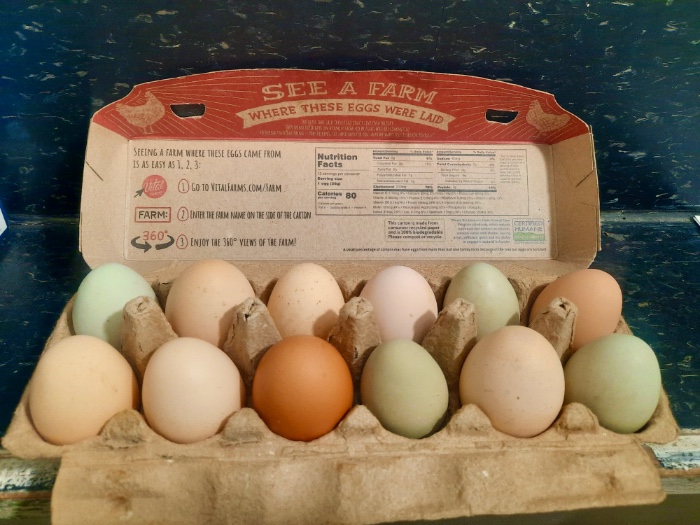 Week 12. One of our fun and nice regulars that we call Torvo brought me eggs from his hens. I make hard boiled eggs for Kaya. That is a recycled egg container and not Torvo's farm.
