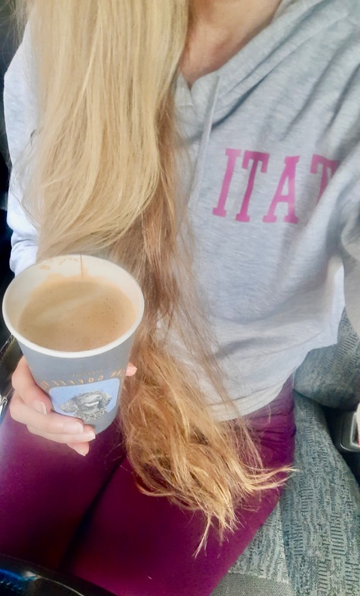 I started my day with a FREE latte from Stumptown. I love their coffee. My hair was a bit too long in my opion. So I decided to go with about four inches off.